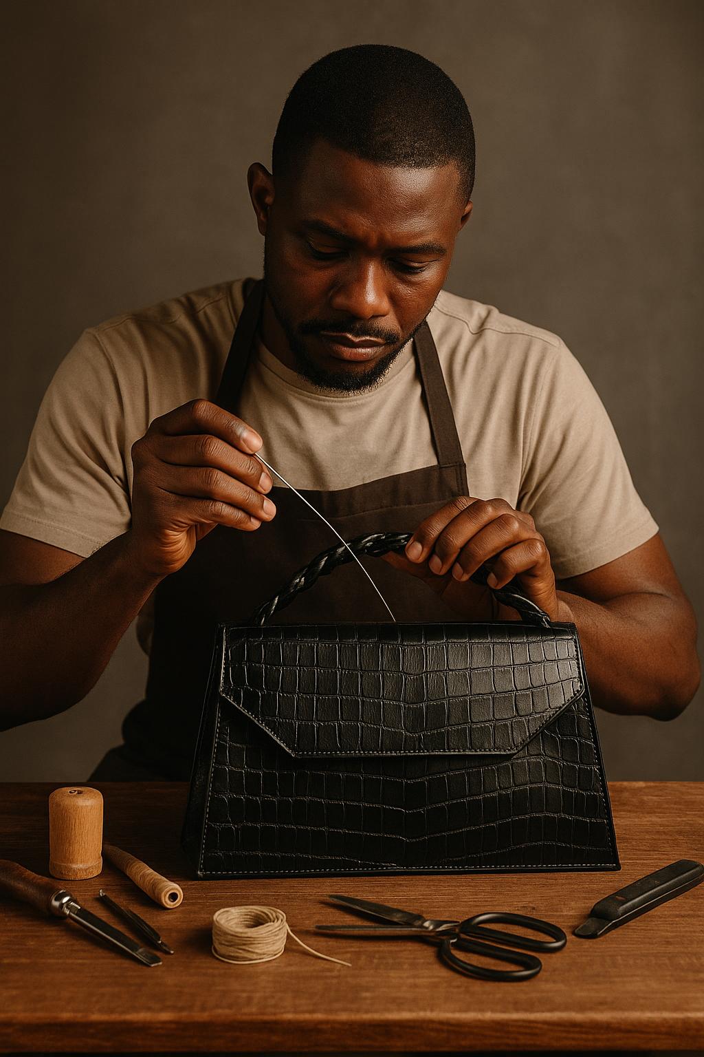 Every Petonuri bag is handmade in Lagos by skilled Nigerian artisans who pour tradition, expertise, and care into each piece. Their craftsmanship blends heritage and modern design, creating bags that are both luxurious and meaningful made to last, made with love.